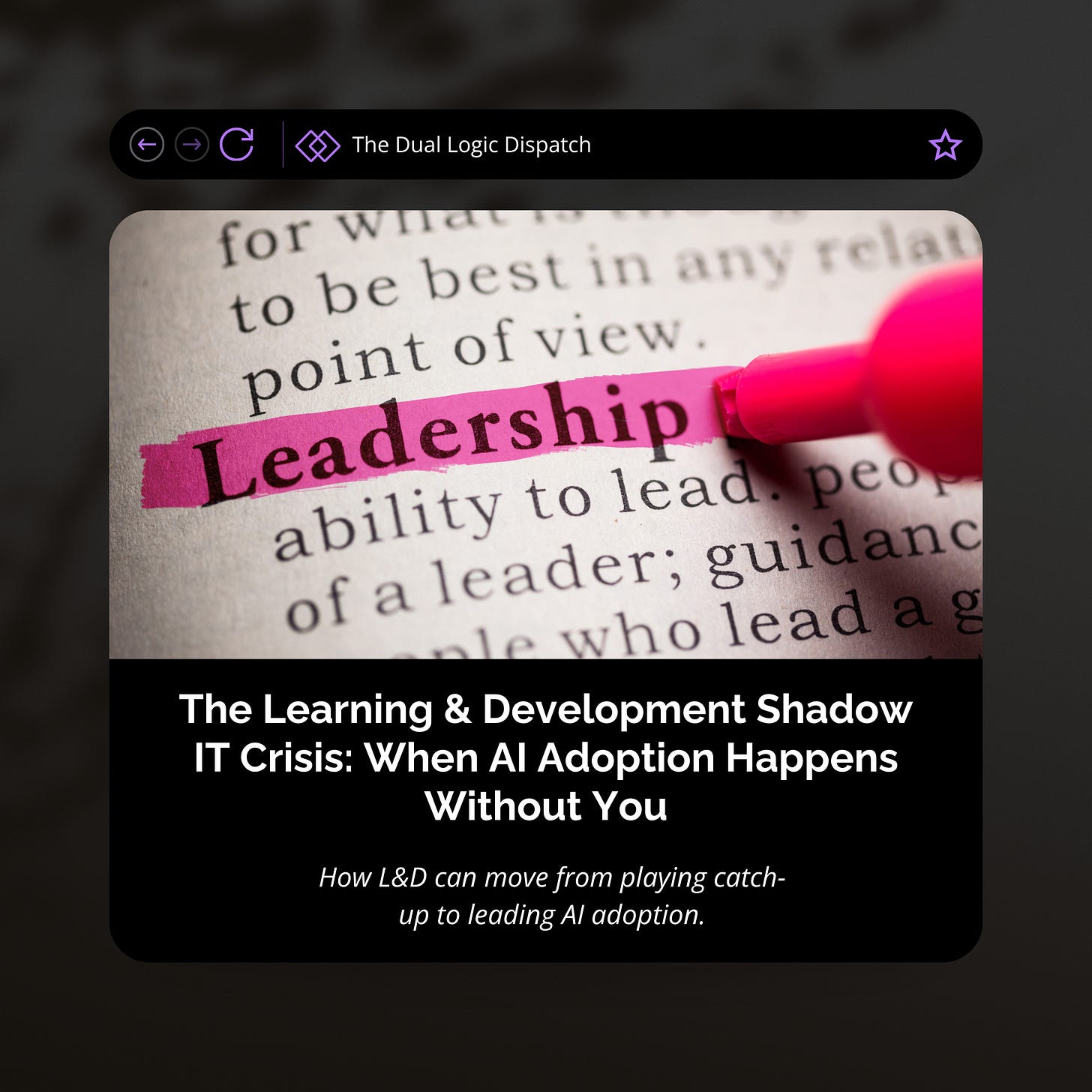This is what happens when learning leaders cede ground in the AI adoption conversation. You don’t just lose the opportunity to shape how AI gets implemented - you lose credibility as strategic partners in organizational change.