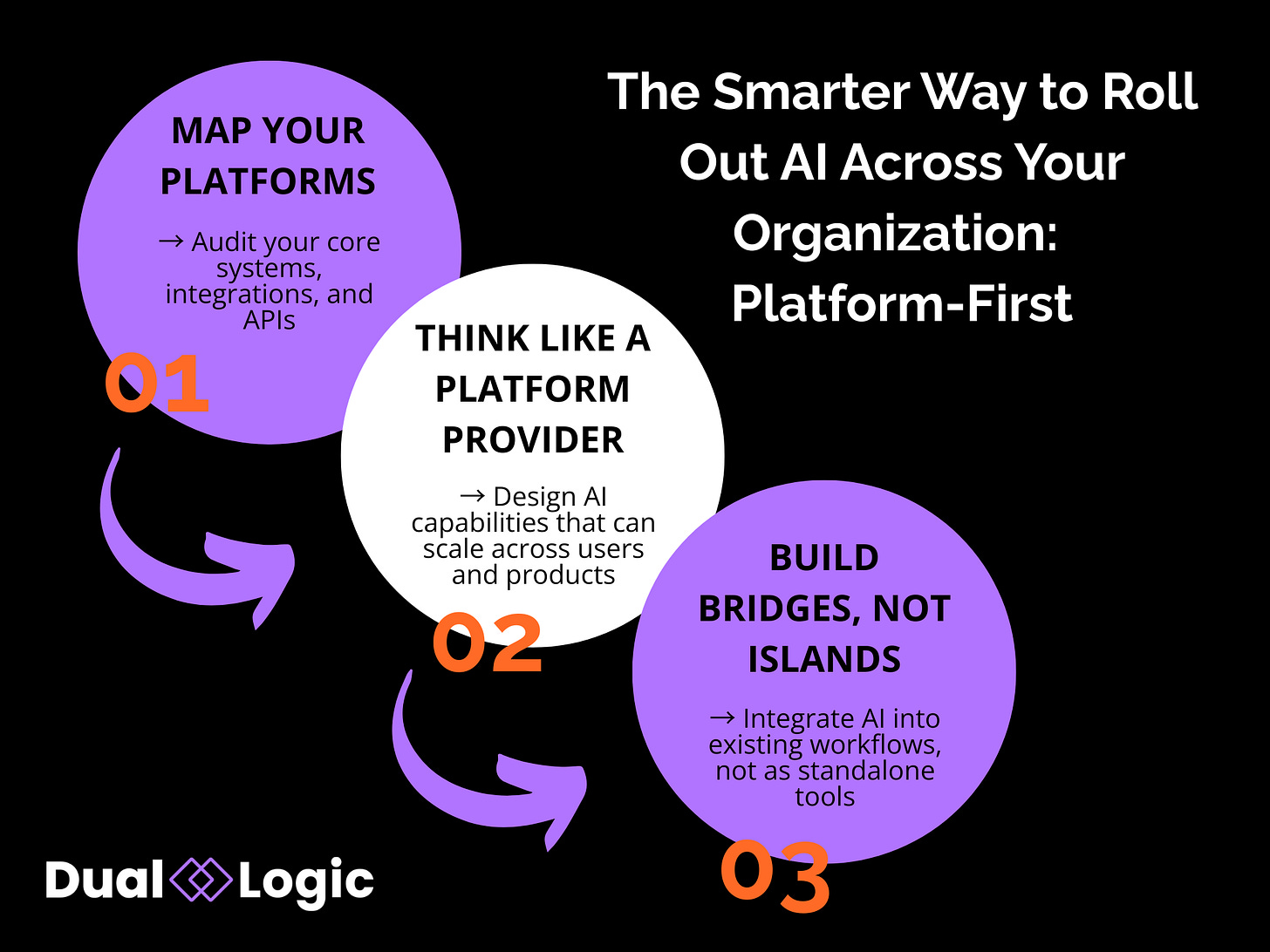 At Dual Logic, we help organizations navigate the complex landscape of AI transformation with strategies that actually integrate with how work gets done. If you’re struggling to move from AI pilots to AI impact, let’s talk about what platform-first AI strategy could look like for your organization.